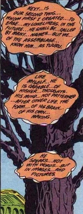 In truth, Yggdrasil grew from a seed planted by the Swamp Thing; the seed itself having been harvested from his body. In the process of travelling backwards through time, he had been given three seeds. The first that he planted, millions of years ago, became Yggdrasil.