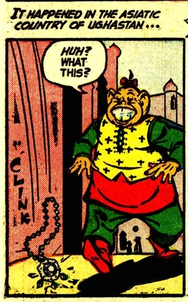 In the Sultanate of Ughastan in 1953, Chop-Chop was duped into eloping with the beautiful princess, who upon escaping the palace and the capital city, and being flown to distant Manoa Island, immediately dumped Chop Chop and hooked up with a her real boyfriend.