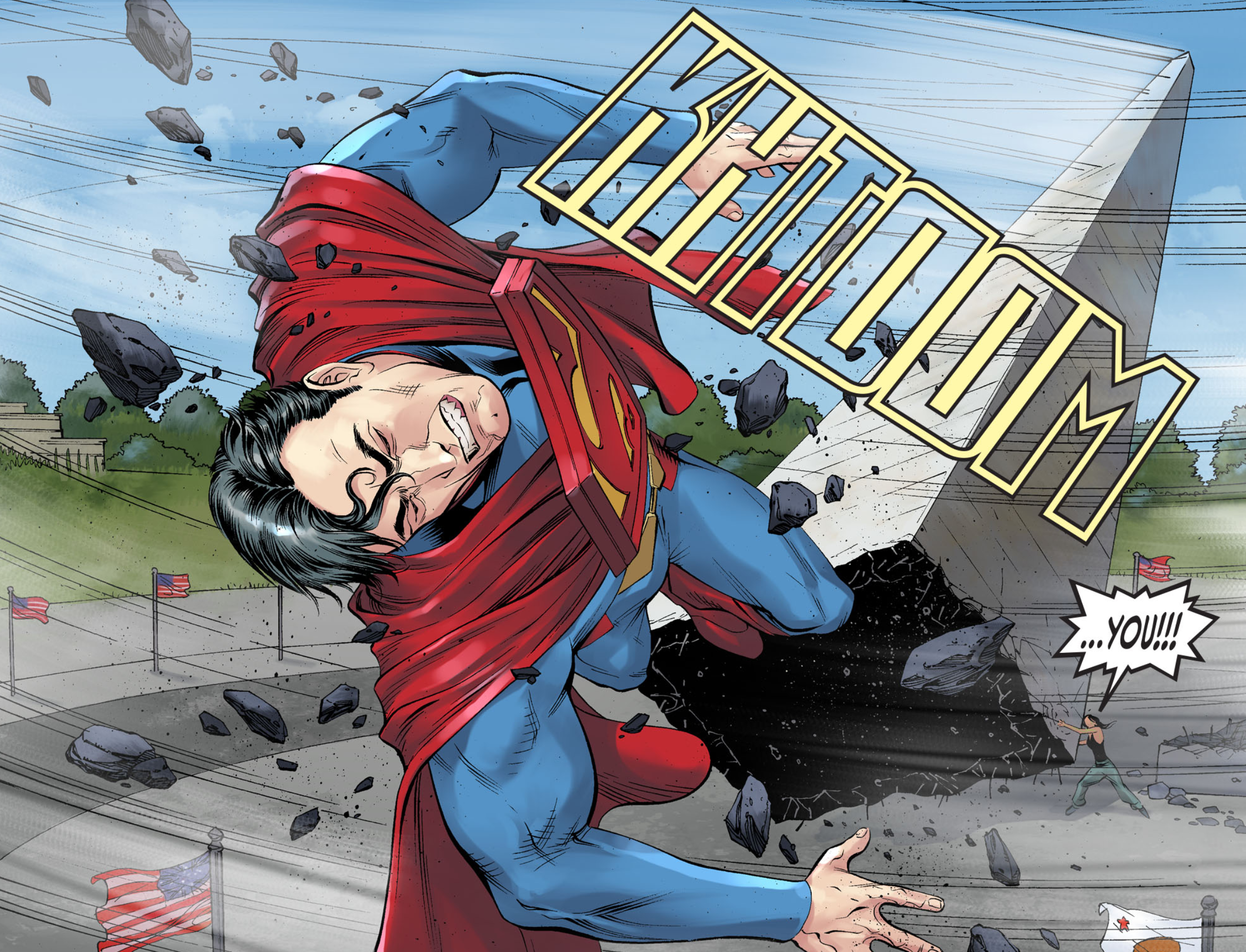 During the fourth year of Superman's Regime, after the death of Huntress a few months earlier, her friend Renee Montoya went into an alcoholic fury for revenge against Superman. Montoya overdosed on super pills and challenged Superman to a fight in Washington, D.C.. In the climax of their fight, Montoya picked up the Washington Monument and hit Superman with the obelisk before succumbing to her overdose. She died at the base of the monument. [2]