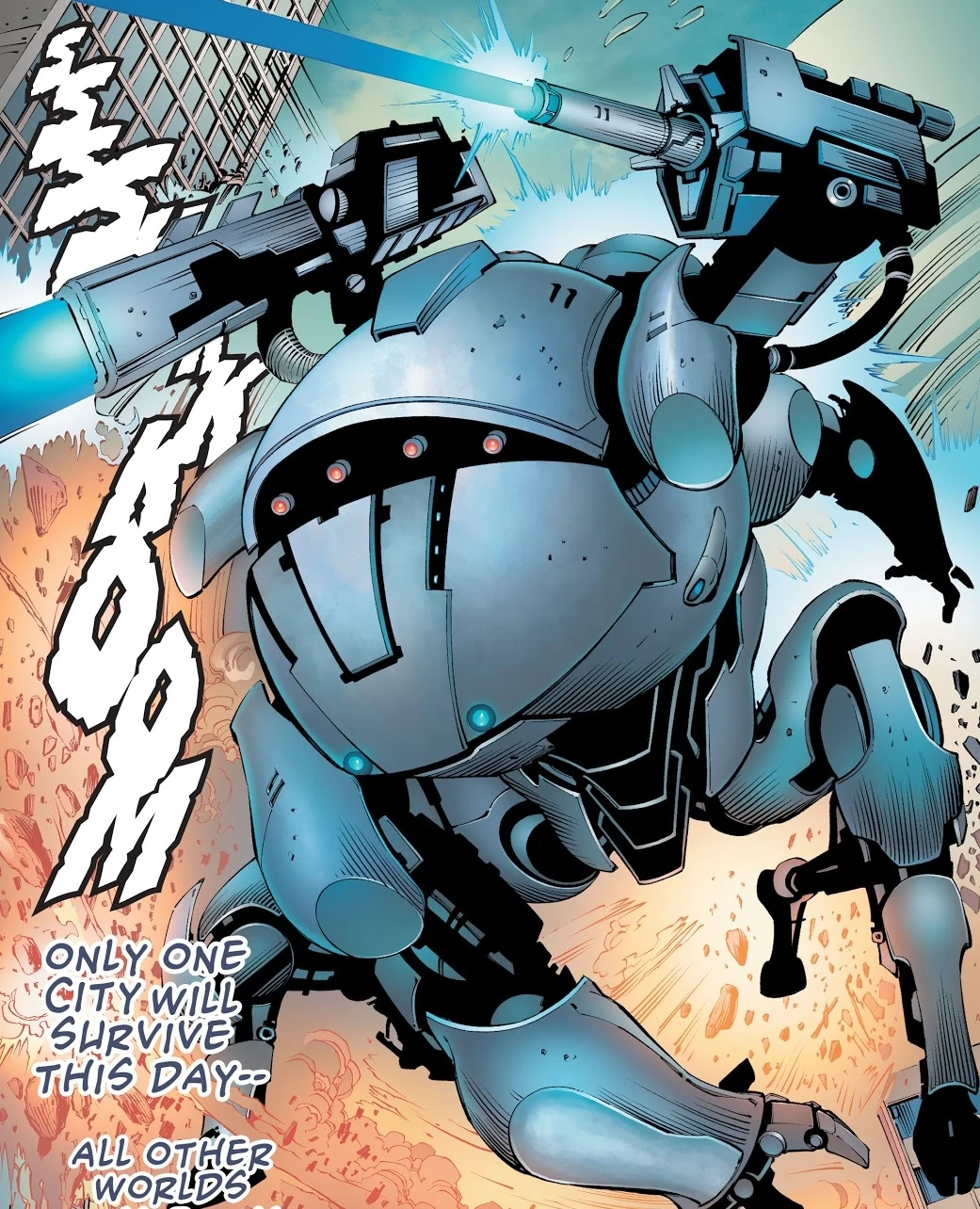 During the Convergence the Weaponers of Qward built The Weapon to face whatever has imprisoned them and fight their way out of the dome that where they were trapped for a year,[1] until unexpectedly the dome that covers the city was lowered and a mysterious entity demanded that each imprisioned city choose a champion to fight each other and the winner would have his city spared.