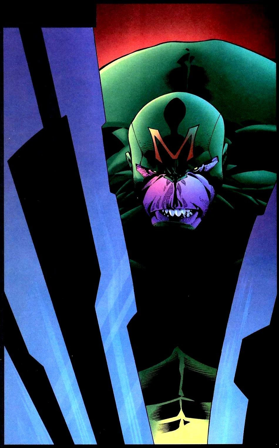 Suddenly, the WildC.A.T.s break trough the floor and begin attacking the villains present. The Troika move to protect Irene, H.A.R.M.'s ex-wife, but they are defeated by TAO, who discovers that in a cyborg funeral, the body of the deceased is melted down and drop-poured to form the grave markers in the catacombs. Catching Slag in this molten metal, the team captures the other villains.