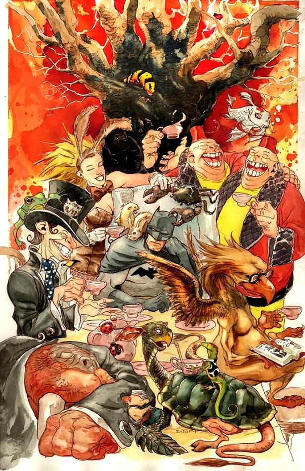 One time, Tweedledum and Tweedledee organized a heist along with the Walrus, the Carpenter, the Lion and the Unicorn, but they were easily defeated by Nightwing, Robin and Batman.[1]