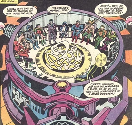 The Worlogog was eventually turned over to Hourman of Justice Legion A, in his role as Metron's successor. Part of its power was stolen by Amazo, and the two androids chased each other through time before Hourman regained the Worlogog's full power.