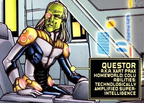 Xart Prax, or Questor, was a Coluan member of the Legion of Super-Villains with a supremely advanced intellect.
