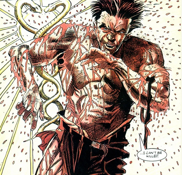 Xombi, also known as David Kim, is a superhero in the Dakotaverse published by Milestone Media. His career began as a scientist, where he developed experimental nanomachines that could cure any damage to the human body. Kim was injured and his lab assistant injected him with the nanovirus to save him, which granted him permanent immortality and indestructability. He also has limited control over the nanites that allows him to break down simple elements and re-construct them into new forms. Xombi was created by John Rozum and Denys Cowan, first appearing in Xombi #0. (1994)