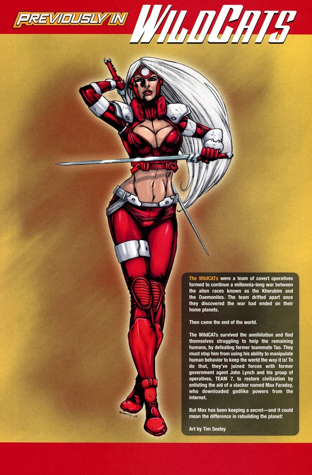 Years later, now going by the name Zealot, she came into contact with a human male named Cole Cash. Zealot trained Cole in Coda fighting arts but despite his training he still preferred firearms to edged weapons. Cole later took the secret identity of Grifter. The pair would join forces with Lord Emp in gathering half blooded Kherubim to form the WildC.A.T.s.