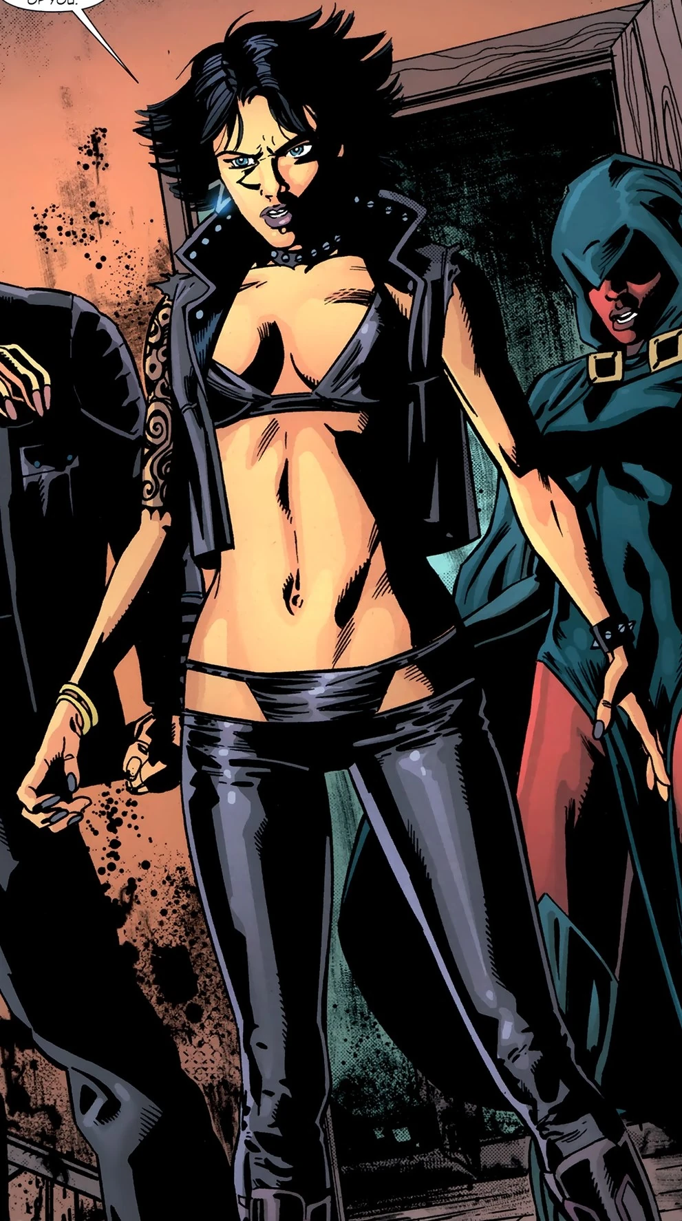She was driving her motorcycle one night while Shade contacted her via his M-Vest. However his power went awry and transformed part of her bike into her father. Zatanna soon found Raven and saved her from Shade's attack. Raven asked whats happening. Zatanna believed that Shade had finally succumbed to madness.[1] Raven, Zatanna, and Mindwarp confronted Shade, who denied purposefully assaulting them. Then they discovered that Amethyst was dead, which seemingly proved their suspicions and prompted them to attack Shade. June Moon became angry, which allowed Enchantress to manifest herself and easily overpowered Raven, Mindwarp, and Zatanna. Zatanna cast a spell that infected Enchantress' organs, however she seemed unfazed by the spell. As Raven and Mindwarp were killed Zatanna became desperate and cast a death spell. Enchantress was seemingly killed, in turn Zatanna's body disintegrated. Soon after it's revealed that the spell did not kill Enchantress.[2]
